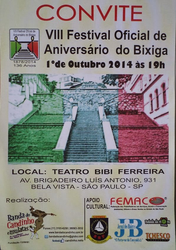 Aniversário do Bixiga - 1º de outubro de 2014 às 19hs